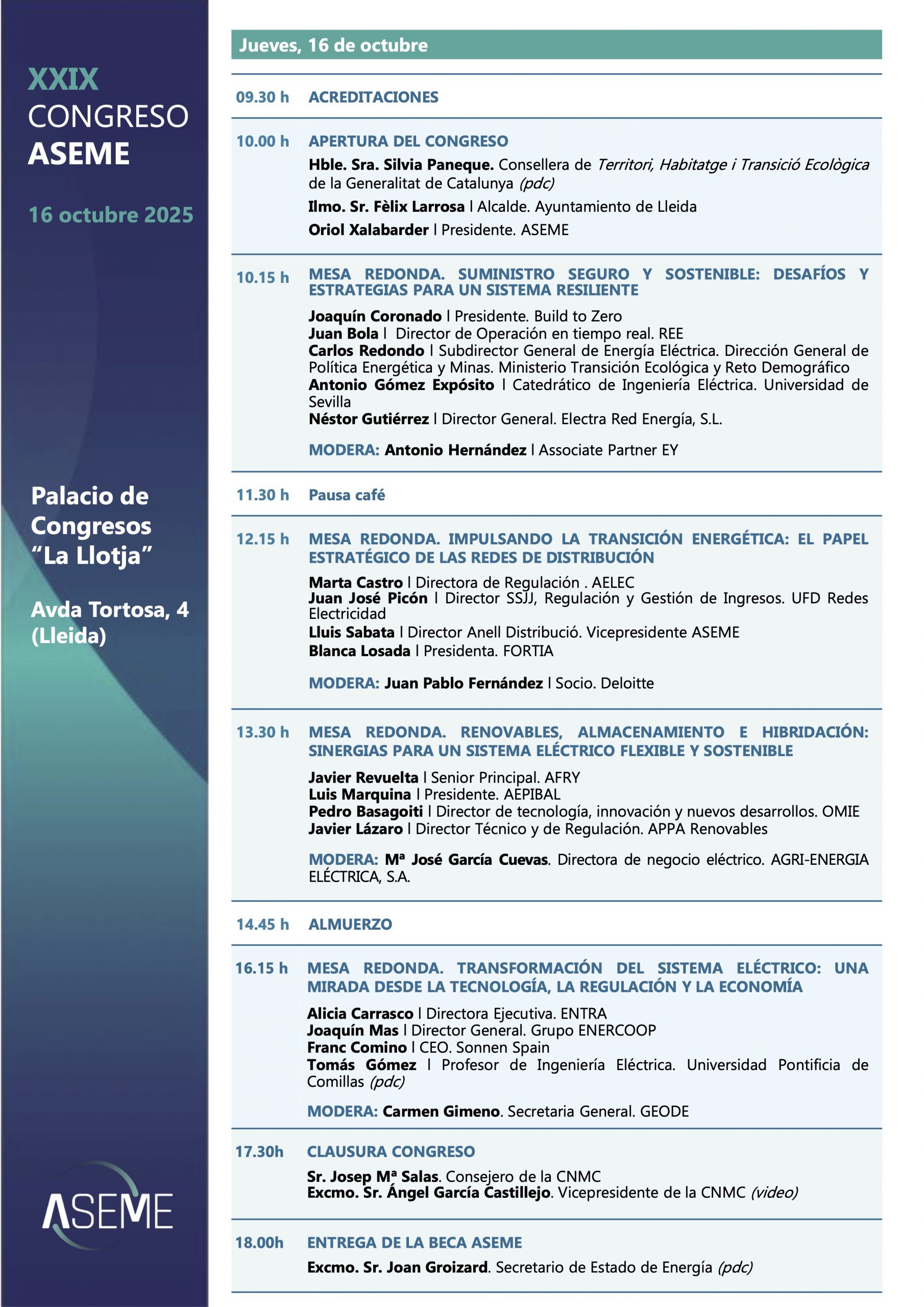 Organizado por ASEME (Asociación de Empresas Eléctricas), el congreso se consolidó como un espacio de reflexión y debate sobre el futuro del sistema eléctrico español, con especial atención a la transición energética, la sostenibilidad y el papel estratégico de las pequeñas distribuidoras locales frente a los grandes operadores.